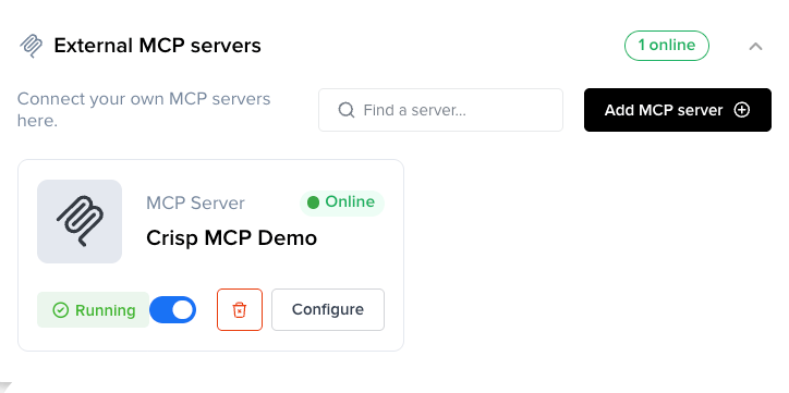 - In the External MCP servers section, click Add MCP server