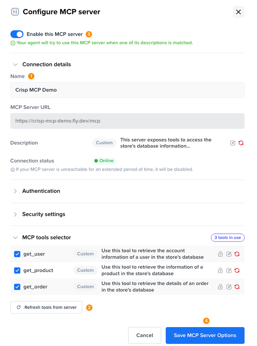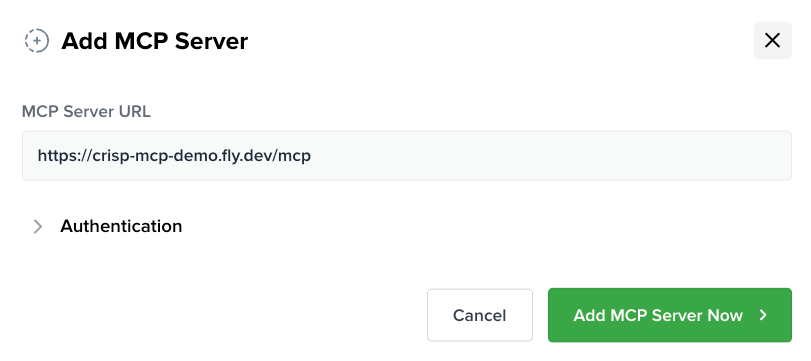 Enter the public URL of your MCP server and click Add MCP Server.